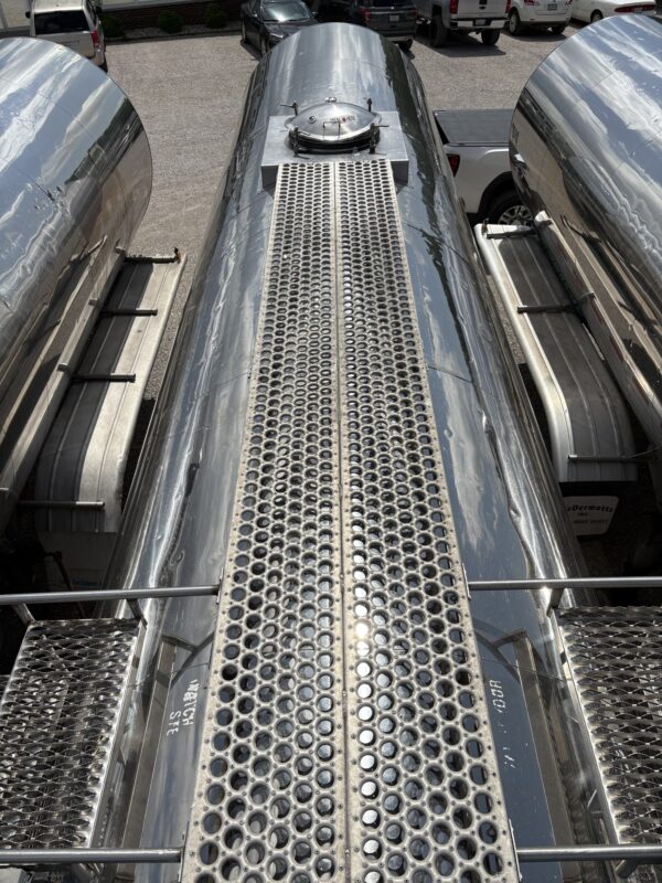 7200 GALLON (3600GL/3600GL), SS RING/BOLSTER WITH SS SUBFRAMES, CIP SYSTEM, CATWALK BETWEEN MANHOLES, TANDEM AXLE, HUB PILOT WHEELS, HENDRICKSON HT250 SUSPENSION, 2.5″JABSCO PUMP.