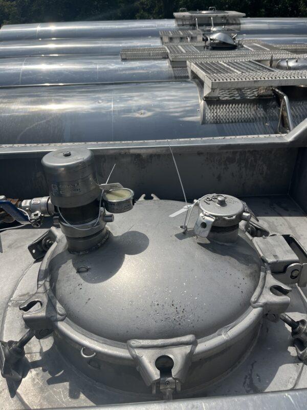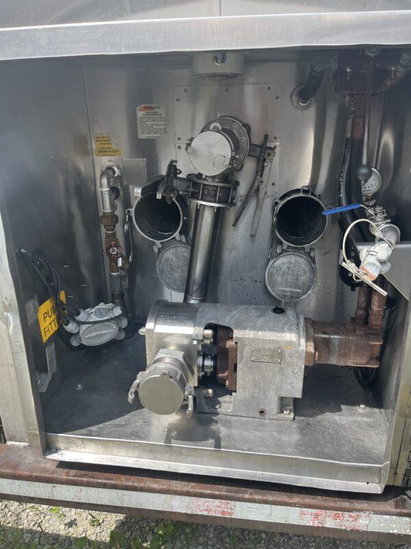 1999 TREMCAR 6700 GALLON FOOD GRADE EQUIPPED WITH REAR CABINET, 3″ SS FOOD GRADE PUMP, HOSE TUBES, INTRANSIT HEAT, HYD LINES, SUPER SINGLES & ALUMINUM WHEELS.