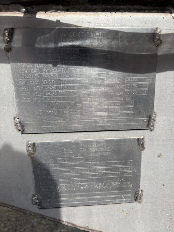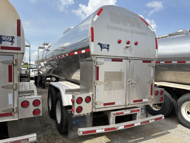 <p>2-COMPARTMENT (3500GL/3500GL), EQUIPPED WITH CIP SYSTEM, LADDERS ON BOTH SIDES, CATWALK BETWEEN MANHOLES, REYCO SPRING SUSPENSION, HUB PILOT WHEELS, & 2.5″ JABSCO PUMP</p>