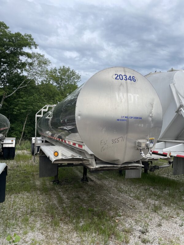 2003 WALKER 6500 GALLON 3A SANITARY TRANSPORT EQUIPPED WITH HENDRICKSON INTRAAX AIR RIDE, LP22.5 TIRES, STEEL HUB PILOT WHEELS, CIP WASH SYSTEM, 2 LADDERS & 3″ URETHANE INSULATION