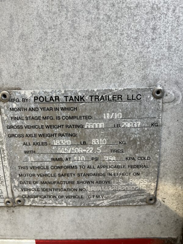<p>2011 POLAR 1620 CUBE FOOD GRADE DRY BULK EQUIPPED WITH 6″ VALVES, 6″ SWING AWAY EASY OPEN TEES, TOP AIR, HENDRICKSON INTRAAX AIR RIDE, ALUMINUM WHEELS, & LP22.5 SUPER SINGLES</p>