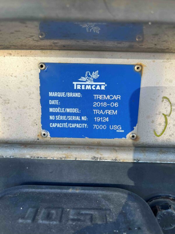 2019 TREMCAR 7000 GALLON FOOD GRADE DOT 407SS 19124